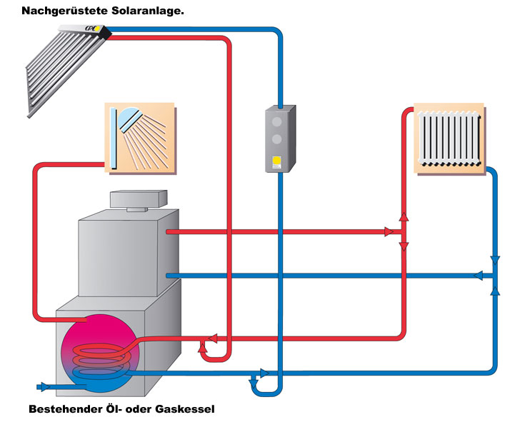 zur solaren Warmwasserbereitung und (Optional) Heizungsunterstützung.